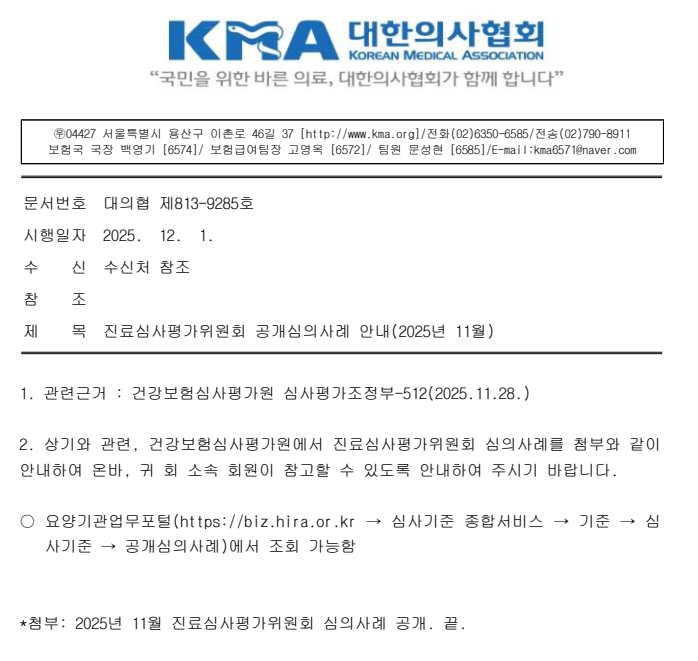 관련근거 : 건강보험심사평가원, 심사평가조정부-226(2025. 10. 31.)