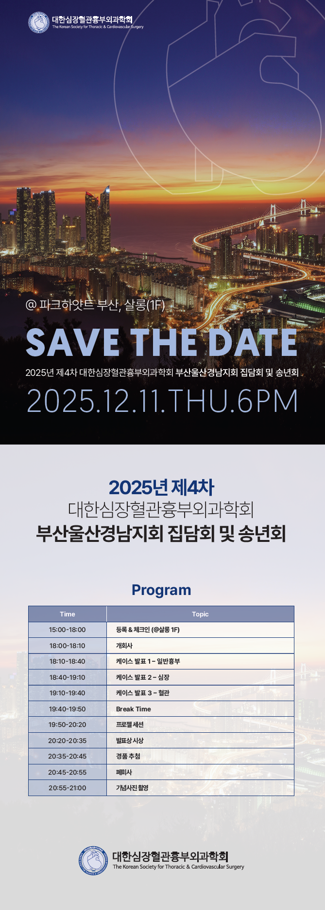 [부산울산경남지회] 2025년 제4차 대한심장혈관흉부외과학회 부산울산경남지회 집담회 개최 안내
