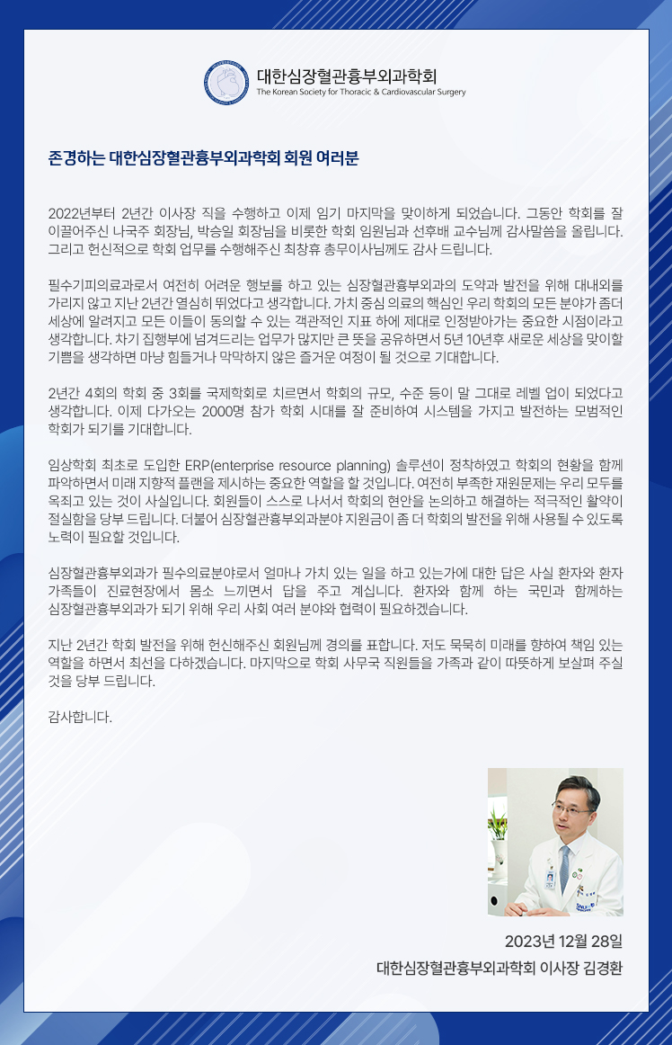 [대한심장혈관흉부외과학회] 김경환 이사장님 이임사