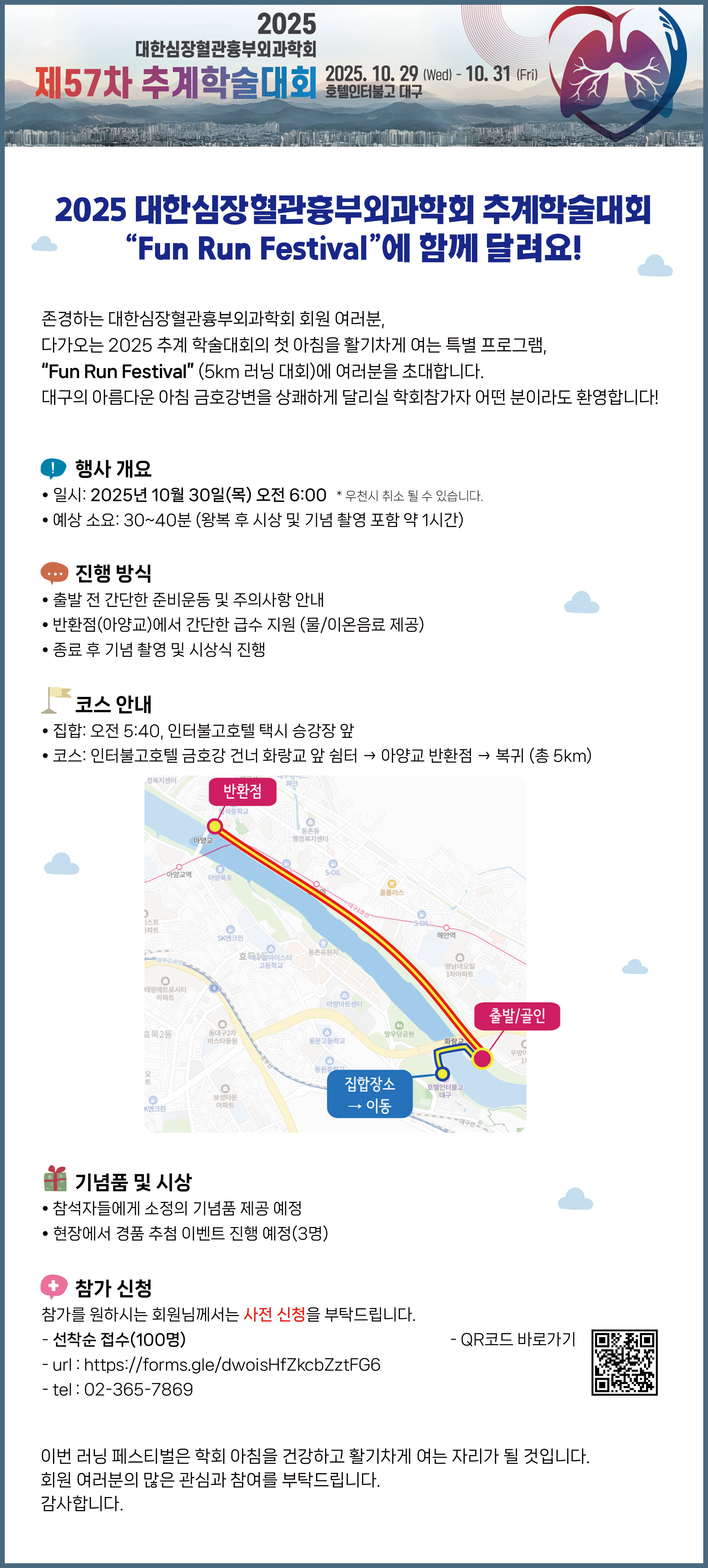 2025 대한심장혈관흉부외과학회 제57차 추계학술대회 "Fun Run Festival" 2차 안내