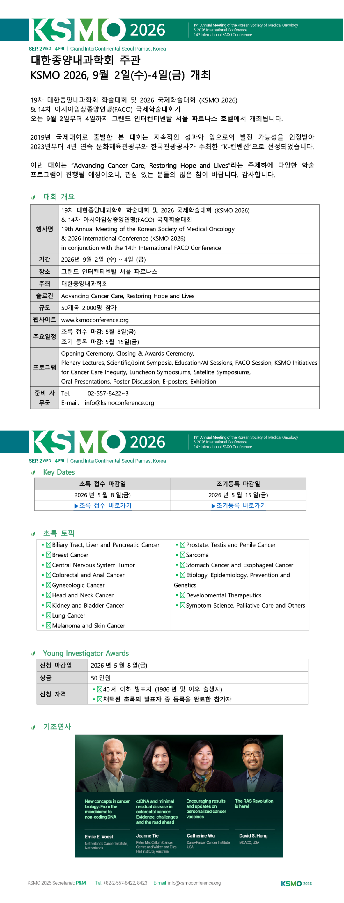 [대한종양내과학회] 19차 대한종양내과학회 학술대회 및 2026 국제학술대회 개최 안내